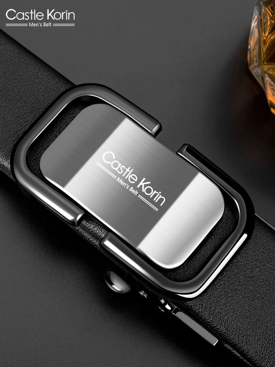 Men's Genuine Cowhide Leather Belt - Automatic Alloy Buckle Dress Belt
